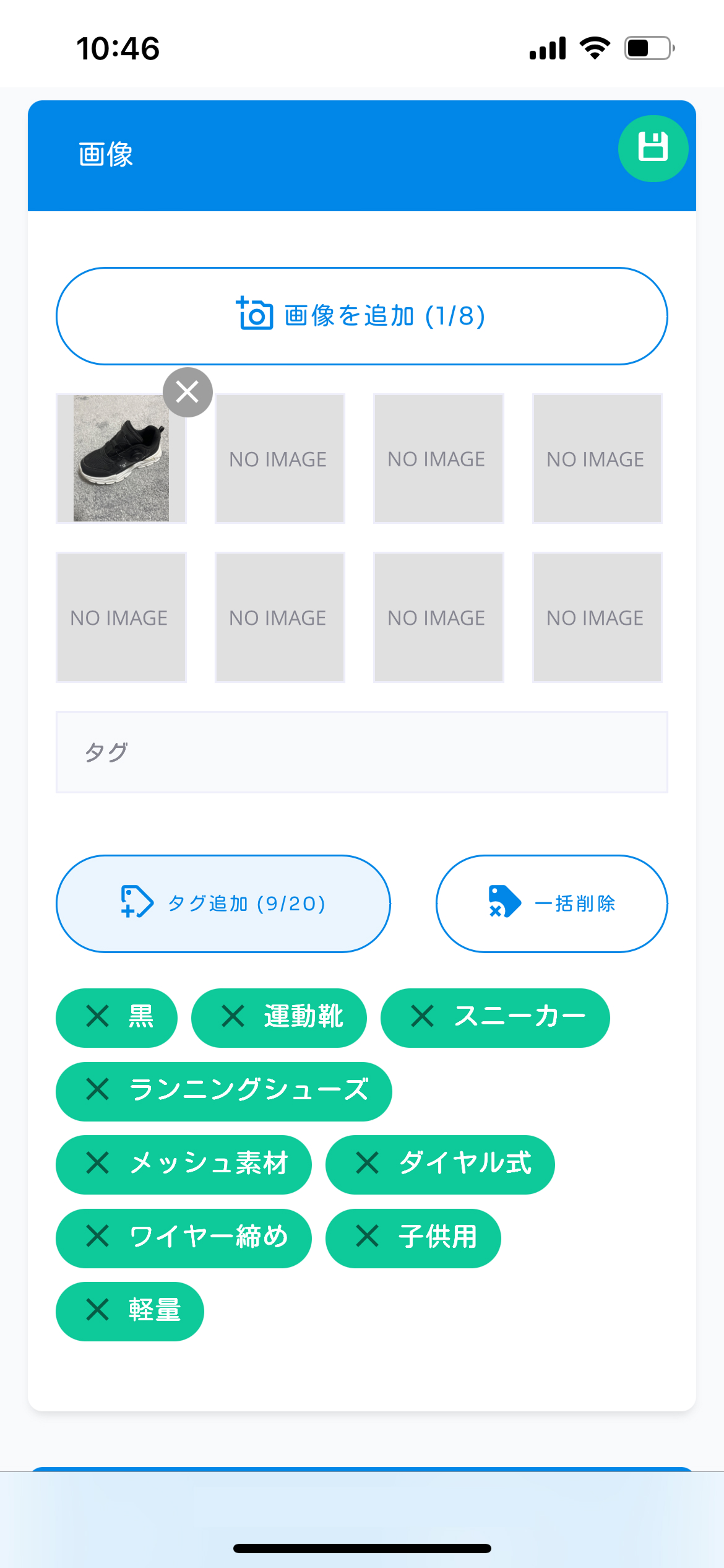 「遺失物情報登録画面」で画像撮影後の画面。様々なタグや分類などが自動登録されます。